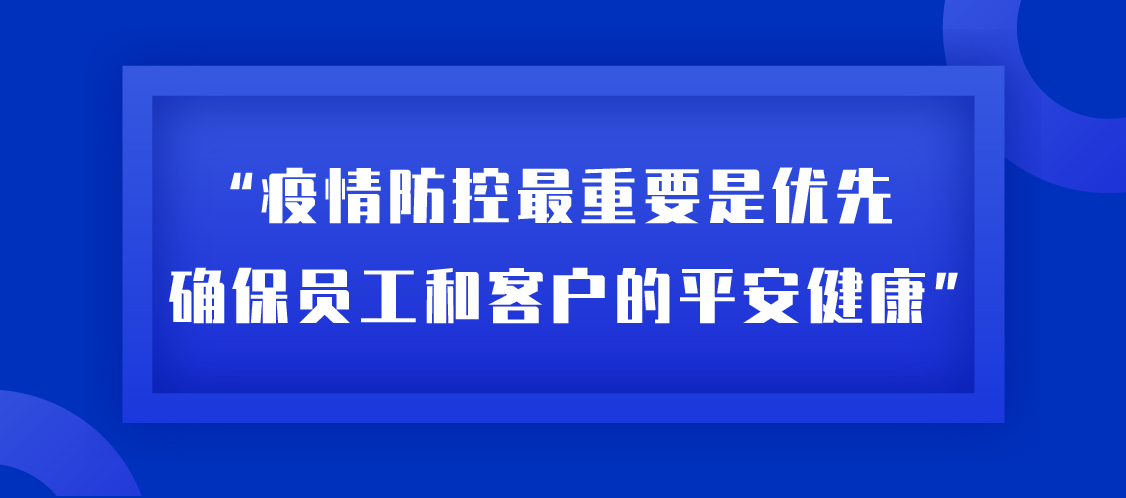 張總多次對工作小組強調(diào):“疫情防控最重要是優(yōu)先確保員工和客戶的平安健康”。陳主任表示,基層一線是對外服務(wù)的窗口,是防控工作重中之重,集團全體同仁多一分擔(dān)當(dāng),員工的安全就多一分保障,我們的客戶和家人就多一分安康。
