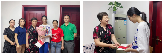 集團(tuán)黨委書(shū)記鄭藝紅等領(lǐng)導(dǎo)來(lái)到員工家中,代表集團(tuán)張桂陽(yáng)董事長(zhǎng)和公司向員工其及子女表示熱烈的祝賀和衷心的祝福,并送上盈眾基金會(huì)精心準(zhǔn)備的獎(jiǎng)學(xué)金、禮品和鮮花。同時(shí)送達(dá)的,還有公司給員工子女的一封信,信中對(duì)他們金榜題名表示熱烈祝賀,同時(shí)深情寄語(yǔ),期望學(xué)子們帶著期待與憧憬,在全新跑道上,更好地照顧自己、更好地自我管理,鍛煉身體、學(xué)習(xí)知識(shí)、體驗(yàn)生活、不斷成長(zhǎng),在追求理想的道路上實(shí)現(xiàn)人生的目標(biāo)與價(jià)值。