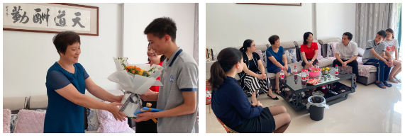 9月14日,集團(tuán)黨委書(shū)記鄭藝紅、行政服務(wù)部副總經(jīng)理曾霞、廈門(mén)盈海副總經(jīng)理鐘惠端一行人前往廈門(mén)盈海展廳經(jīng)理吳秋燕家中走訪。今年中考,吳秋燕的兒子嚴(yán)浩然以?xún)?yōu)異成績(jī),順利考入廈門(mén)雙十中學(xué)。吳秋燕一家人表示:“集團(tuán)對(duì)員工子女學(xué)業(yè)的關(guān)心與鼓勵(lì),我們真的很感動(dòng)。作為孩子的家長(zhǎng),看到孩子如愿考上自己心儀的高中,我們也很欣慰,希望他繼續(xù)努力,不負(fù)期望。”
