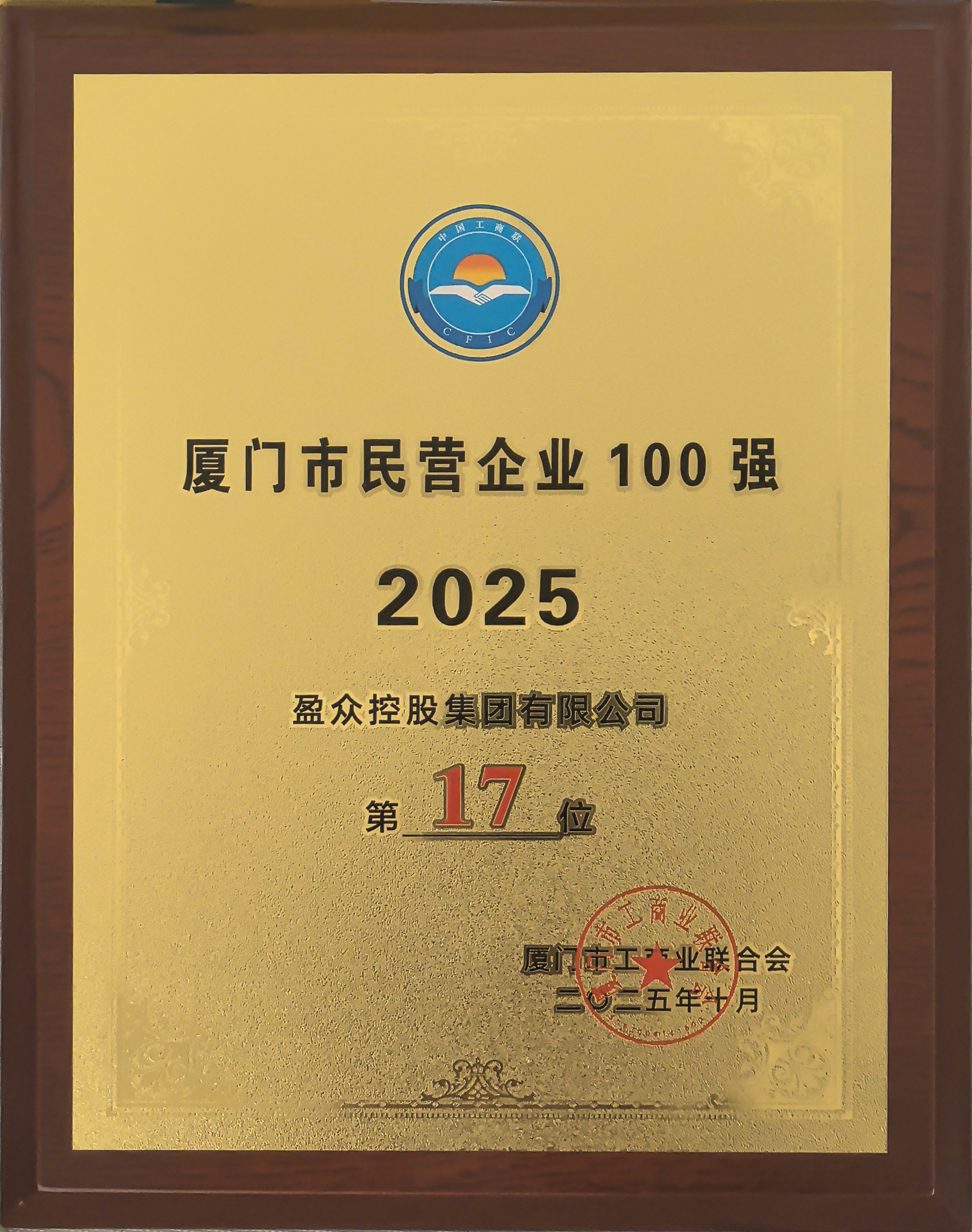喜報 | 盈眾控股集團(tuán)榮登“2025廈門市民營企業(yè)百強(qiáng)榜”第17位!