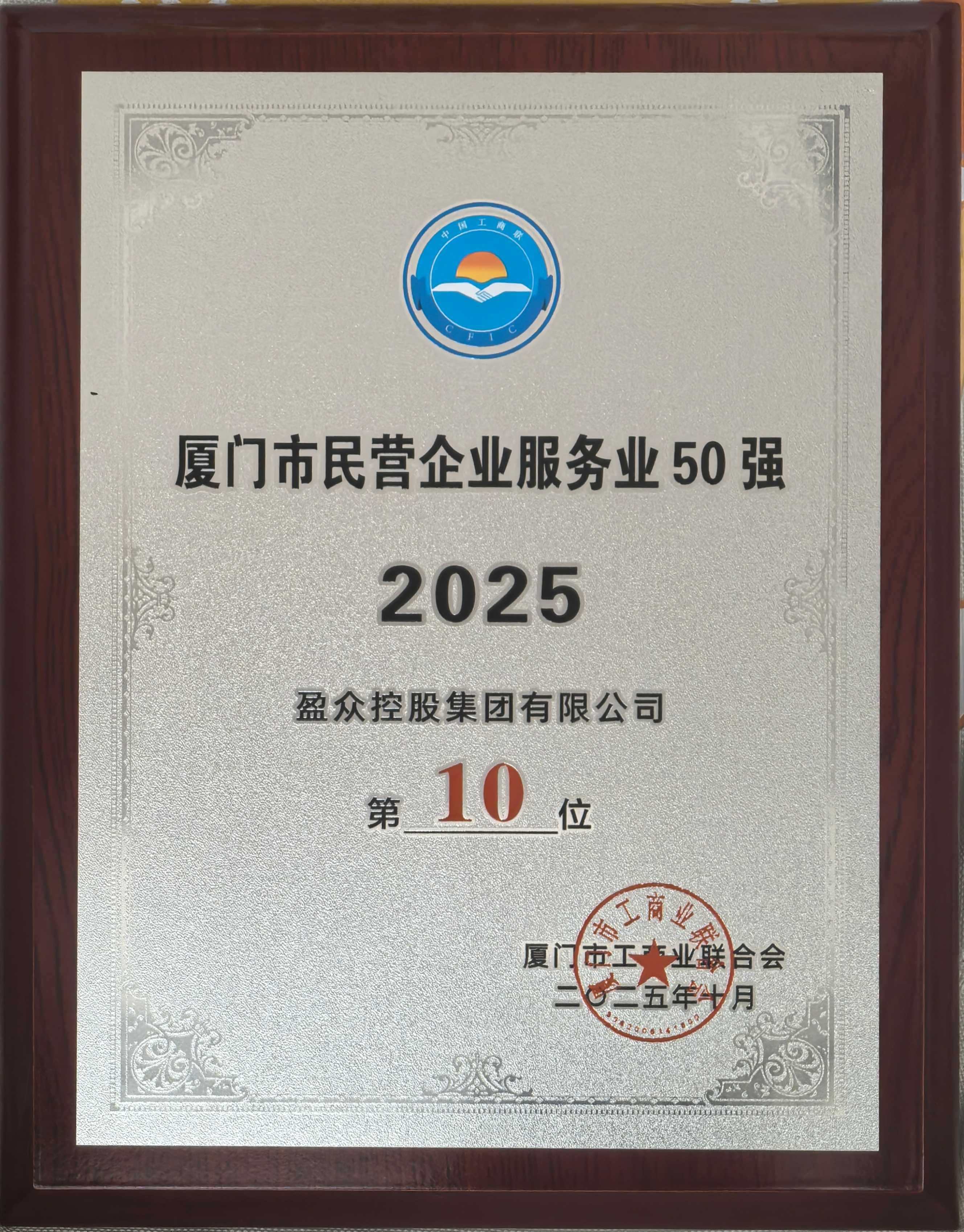 近日,2025年主題為“建言‘十五五’ 民企勇?lián)?dāng)”的廈門企業(yè)家日大會召開。會上,2025廈門市民營企業(yè)100強(qiáng)系列榜單發(fā)布,盈眾控股集團(tuán)憑借各項綜合實力,獲選2025廈門市民營企業(yè)100強(qiáng)第17位、2025廈門市民營企業(yè)服務(wù)業(yè)50強(qiáng)第10位。