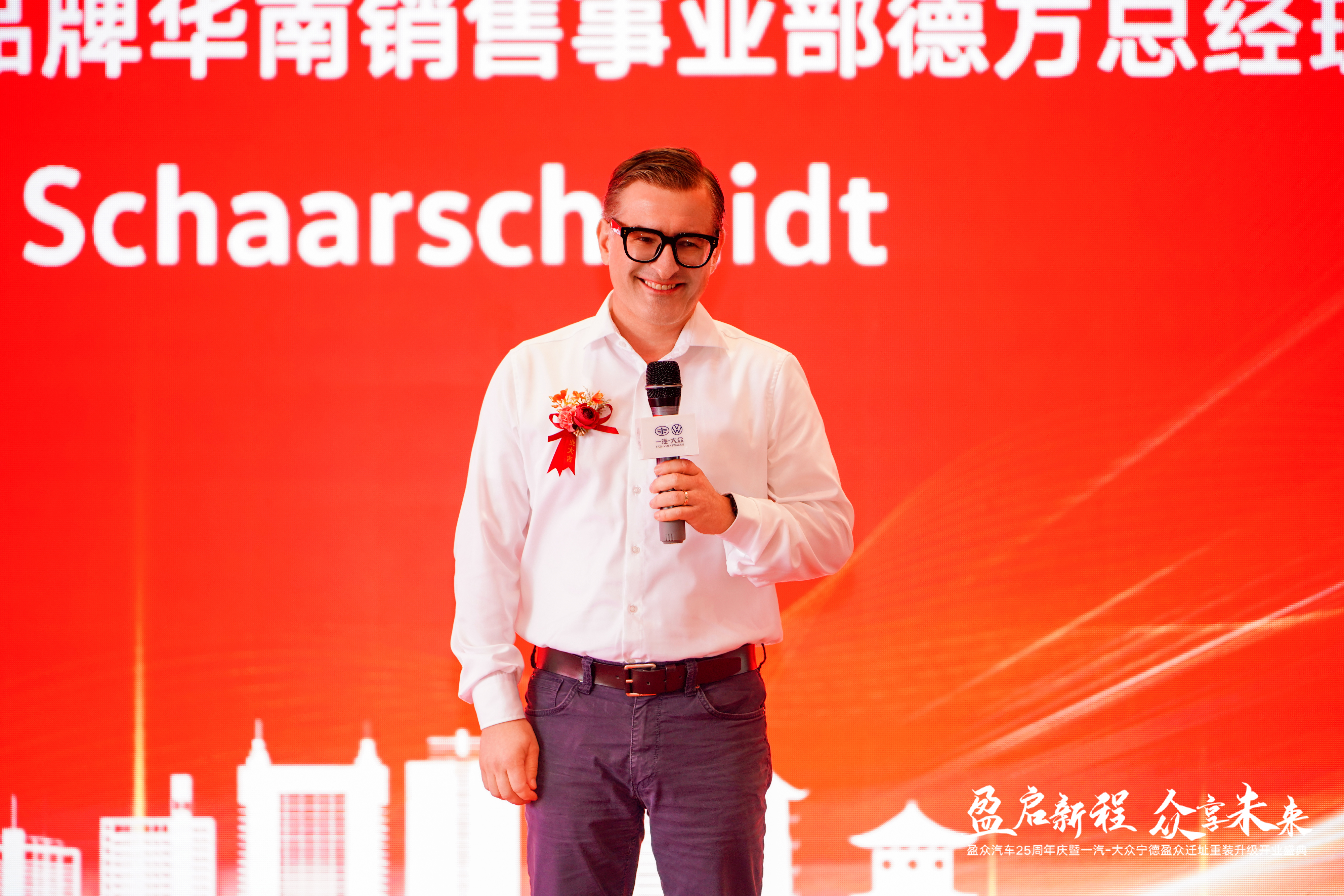 一汽-大眾華南區(qū)銷售事業(yè)部德方總經(jīng)理 Alex Schaarschmidt先生代表廠家致辭。他表示,一汽-大眾秉承“以人為本”的理念,致力為用戶提供高品質(zhì)的車輛及用車服務(wù)。一汽集團(tuán)與大眾已簽署11個(gè)新車型項(xiàng)目,包括純電、插混、燃油車等多種類型。明年計(jì)劃上市的純電車型,基于全新電動(dòng)架構(gòu),且專為中國(guó)市場(chǎng)研發(fā),希望能為中國(guó)消費(fèi)者帶來(lái)更環(huán)保、更智能、更安全的汽車解決方案。同時(shí),盈眾集團(tuán)作為一汽-大眾忠實(shí)伙伴,始終在福建市場(chǎng)深耕細(xì)作,密切圍繞客戶需求,不斷提升服務(wù)水平和服務(wù)能力,為一汽-大眾積累了良好的品牌價(jià)值和市場(chǎng)口碑。寧德盈眾此次重裝升級(jí),相信在盈眾集團(tuán)和一汽-大眾團(tuán)隊(duì)的共同努力下,將成為區(qū)域內(nèi)的行業(yè)服務(wù)標(biāo)桿,為用戶提供卓越的用車服務(wù)。
