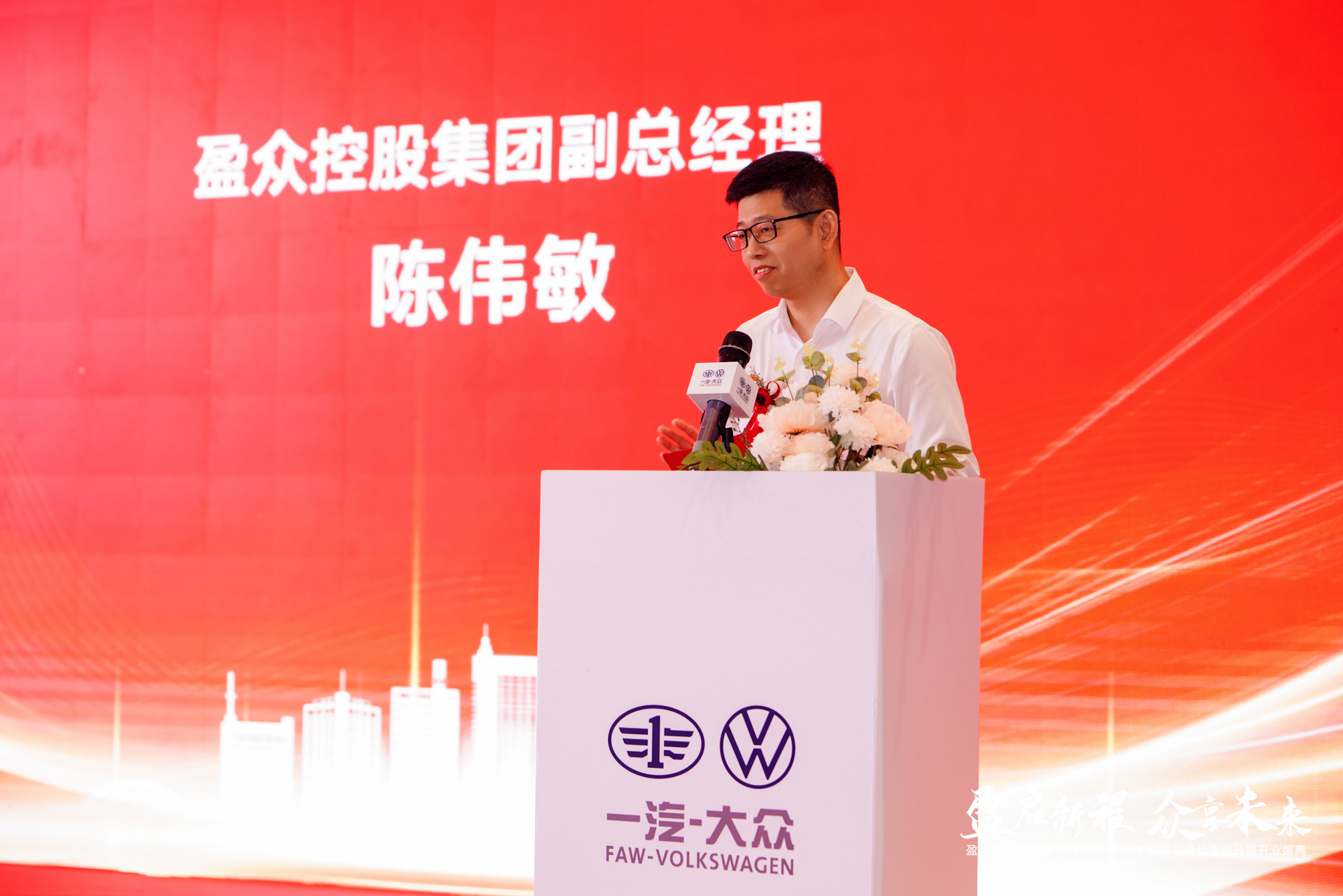 盈眾控股集團(tuán)副總經(jīng)理陳偉敏先生代表盈眾對(duì)見(jiàn)證開(kāi)業(yè)的廠家領(lǐng)導(dǎo)、新老車主、媒體朋友、合作伙伴代表表示歡迎和感謝。陳總表示,今年是盈眾成立25周年,盈眾始終堅(jiān)定跟隨一汽-大眾的發(fā)展步伐,深耕福建市場(chǎng)。今天,寧德盈眾遷址升級(jí)為全新的數(shù)字化展廳,它標(biāo)志著標(biāo)志著新起點(diǎn),新標(biāo)準(zhǔn),新形象,心服務(wù)。我們將依托新展廳的數(shù)字化設(shè)施,及盈眾的全新數(shù)字化平臺(tái),讓每一位客戶更便捷地體驗(yàn)到一汽-大眾品牌安全、舒適的產(chǎn)品魅力與卓越服務(wù)。盈眾將與客戶、合作伙伴攜手探索更加美好的汽車新生活。